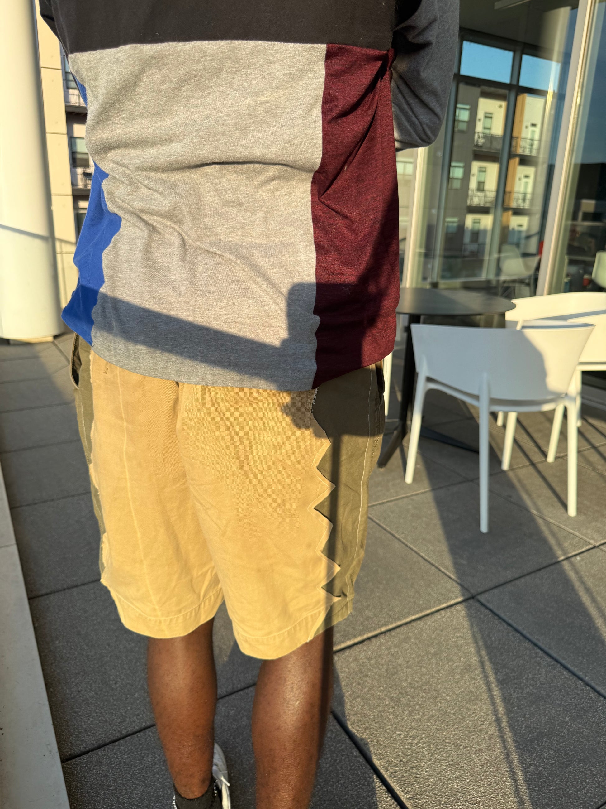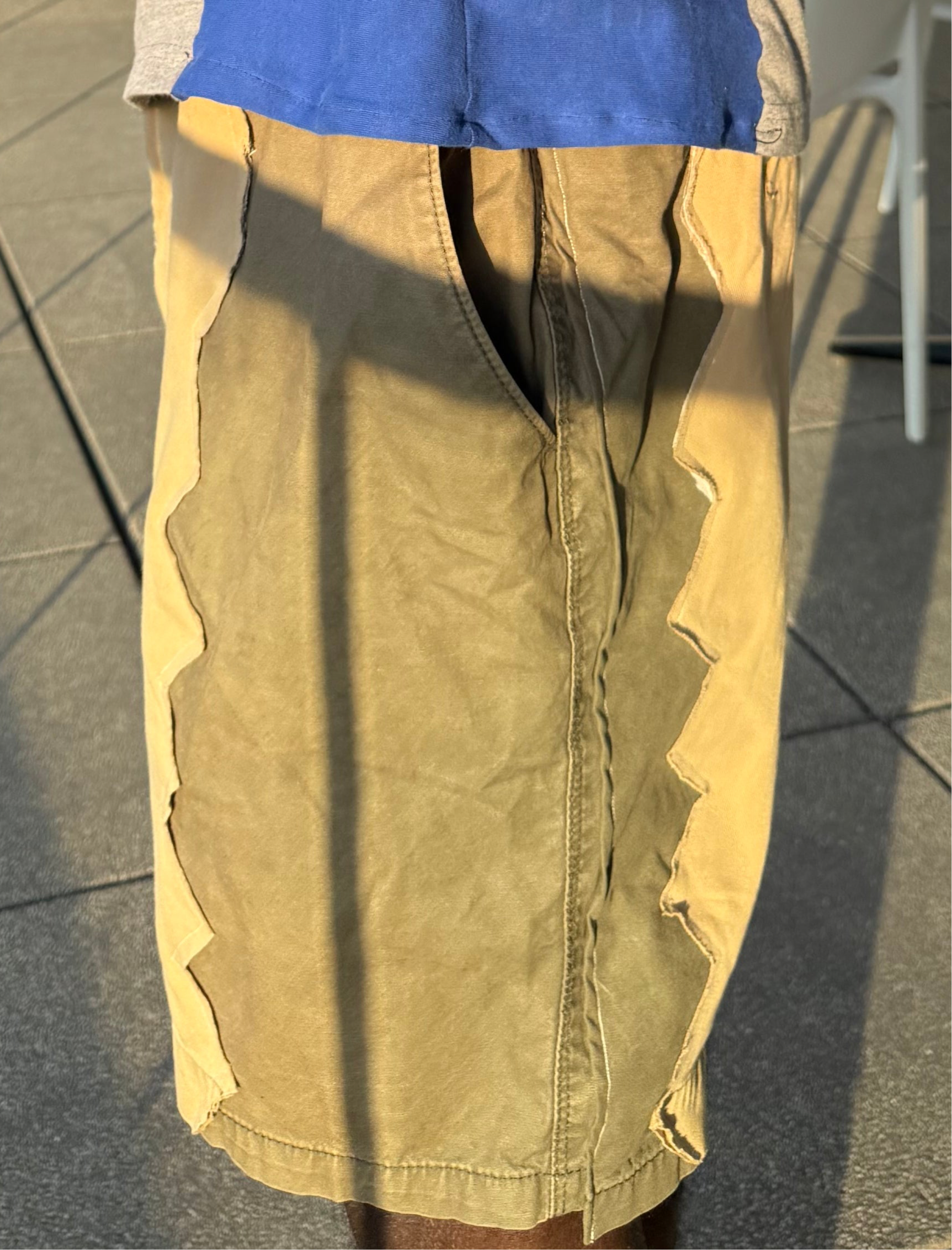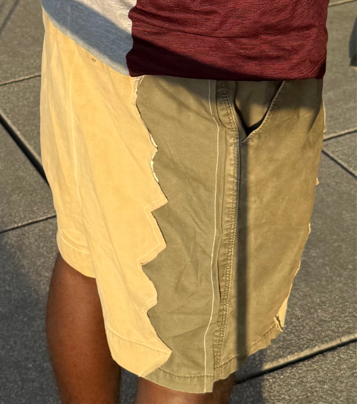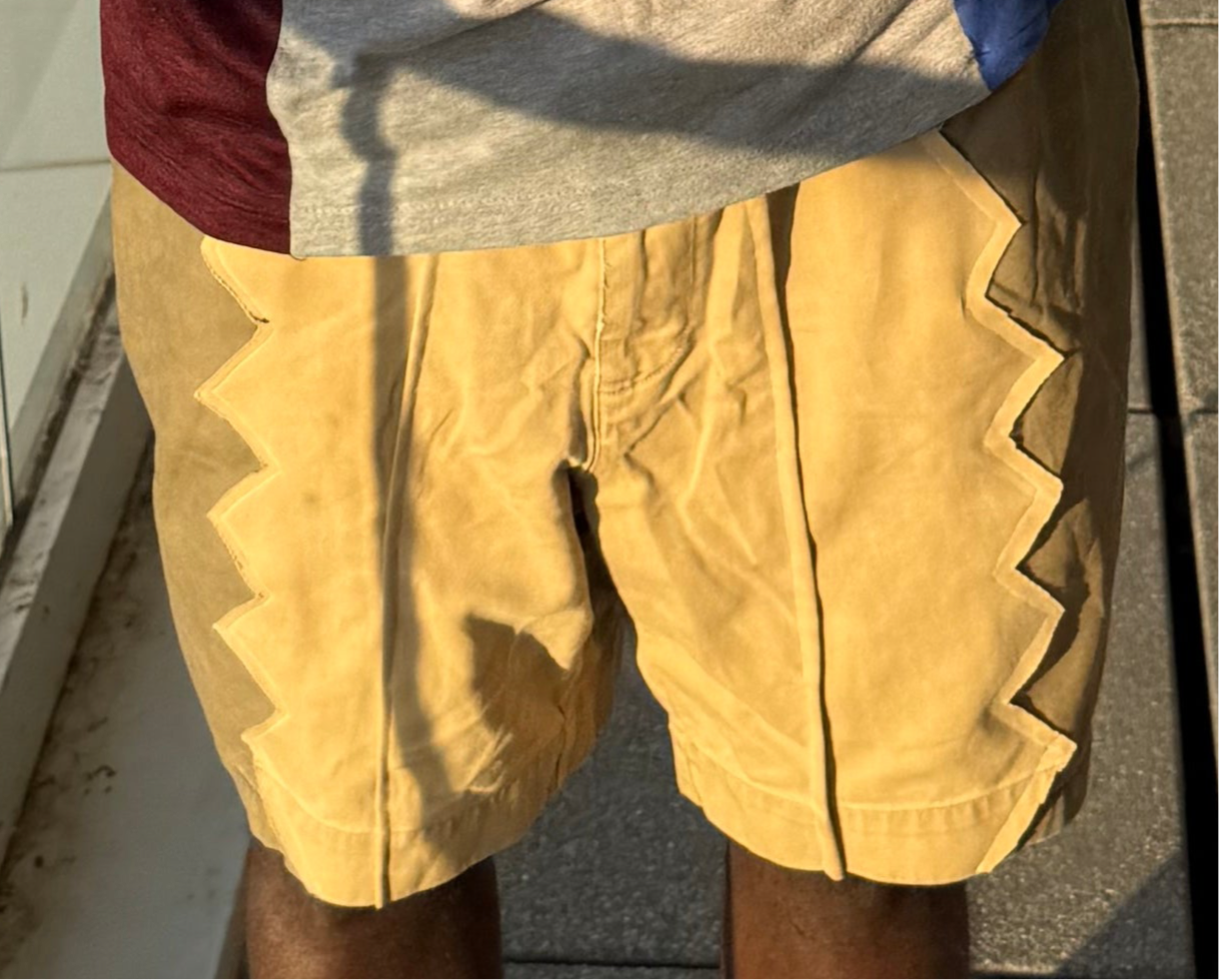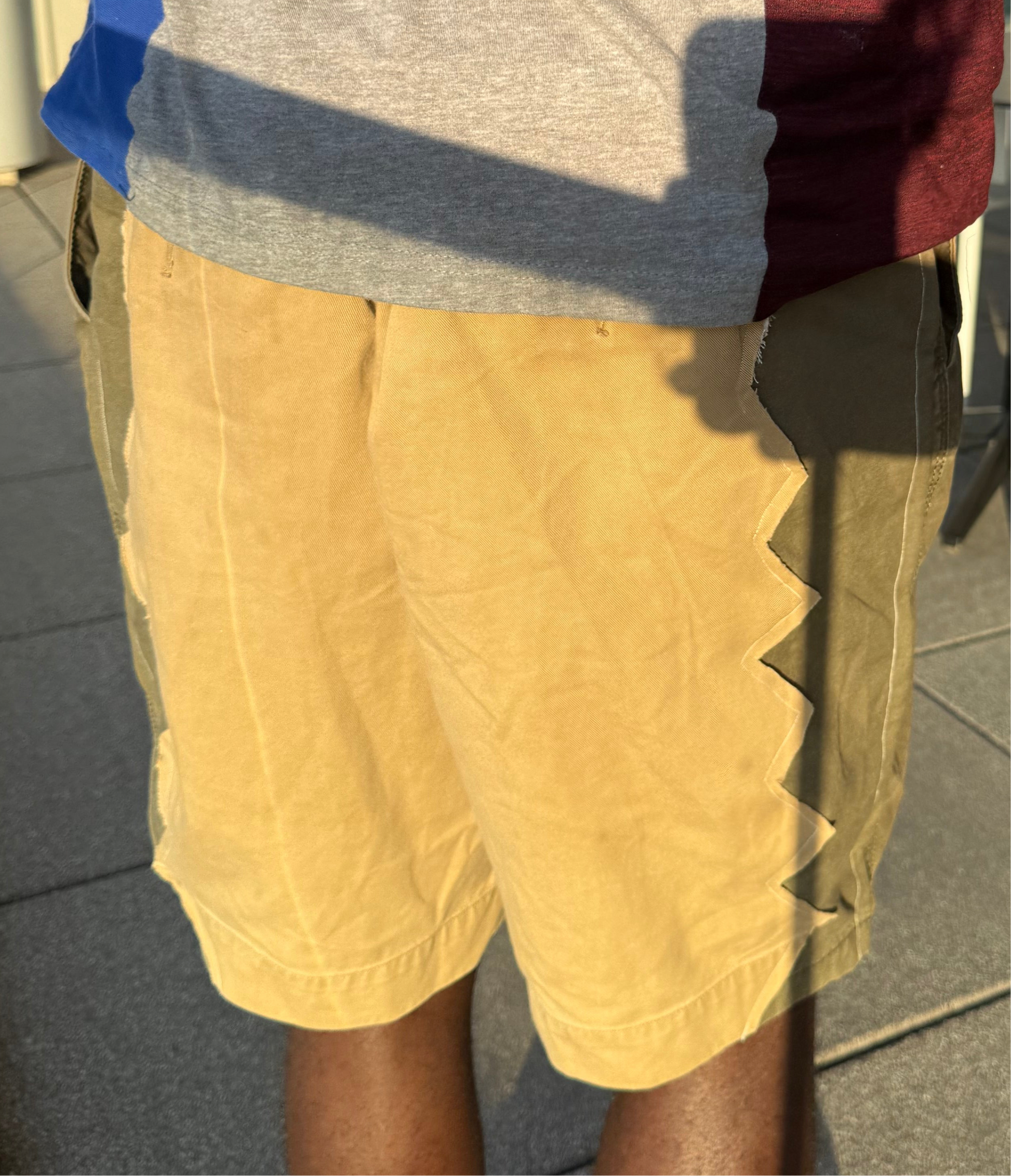 Confidently strut your unique style in our "Alligator Bites" Tan/Olive Green Shorts. Half olive, half tan, these shorts feature a bold zig zag pattern and pleats on the front. Stand out from the crowd with these eye-catching shorts.