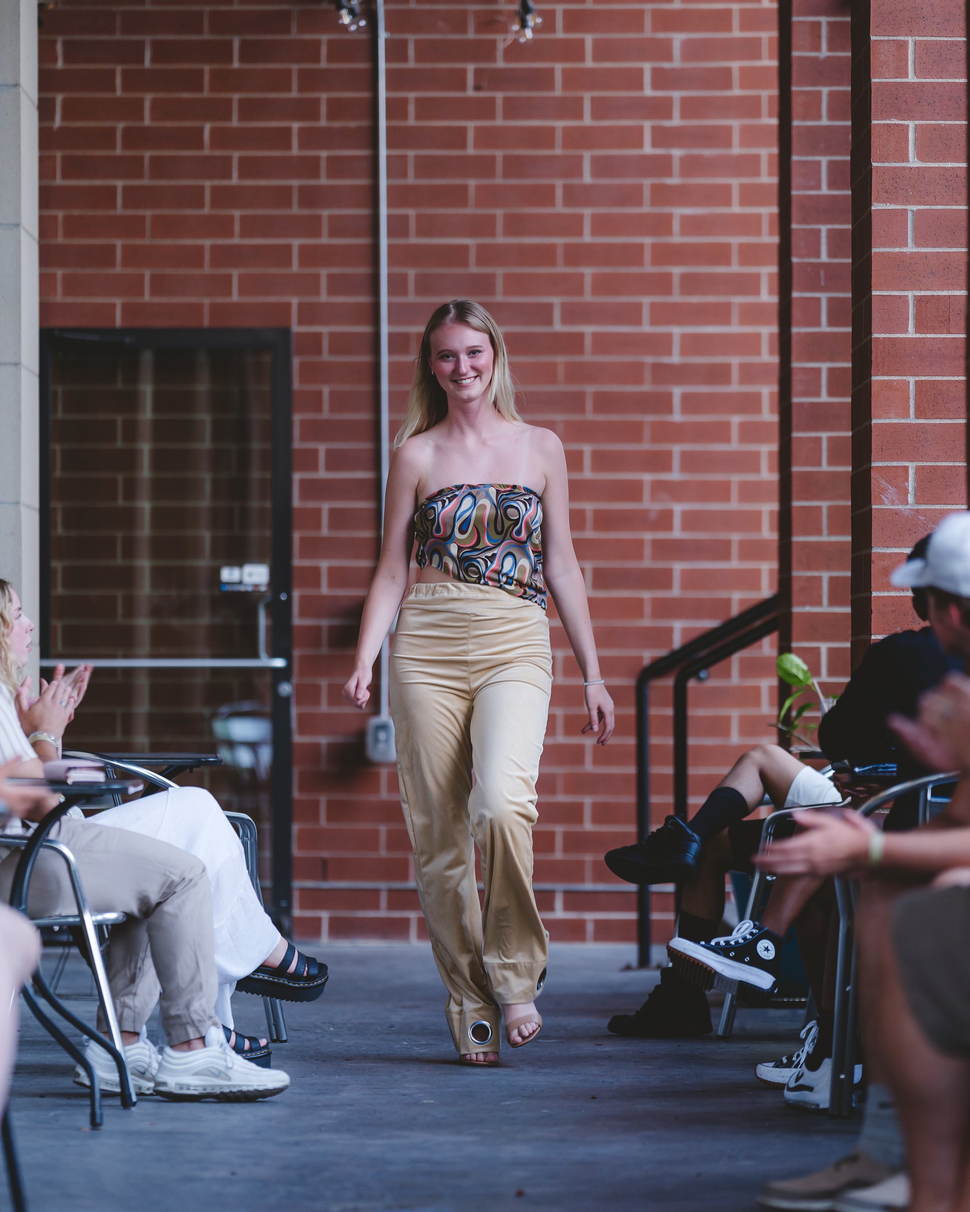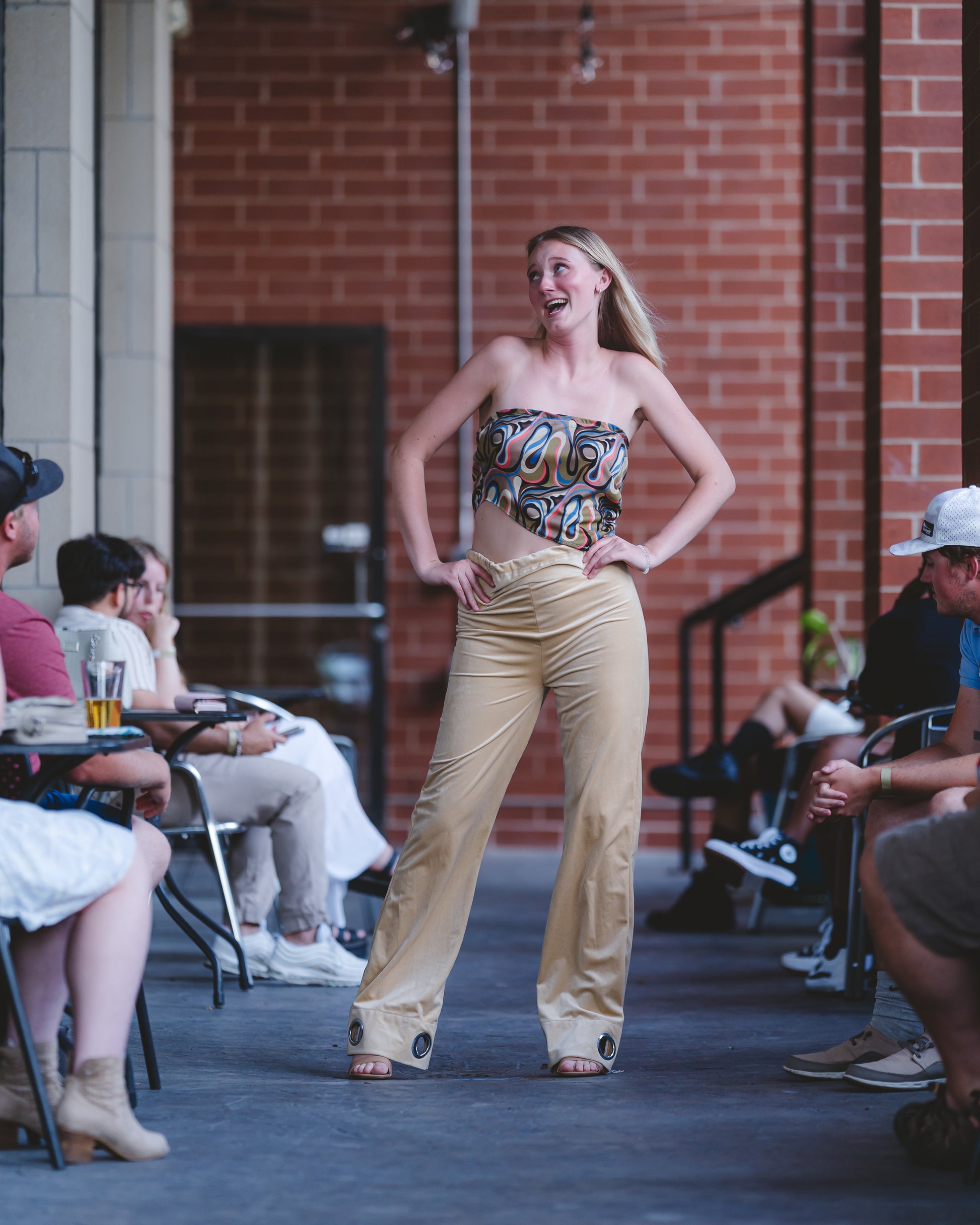 - Sleeveless halter style