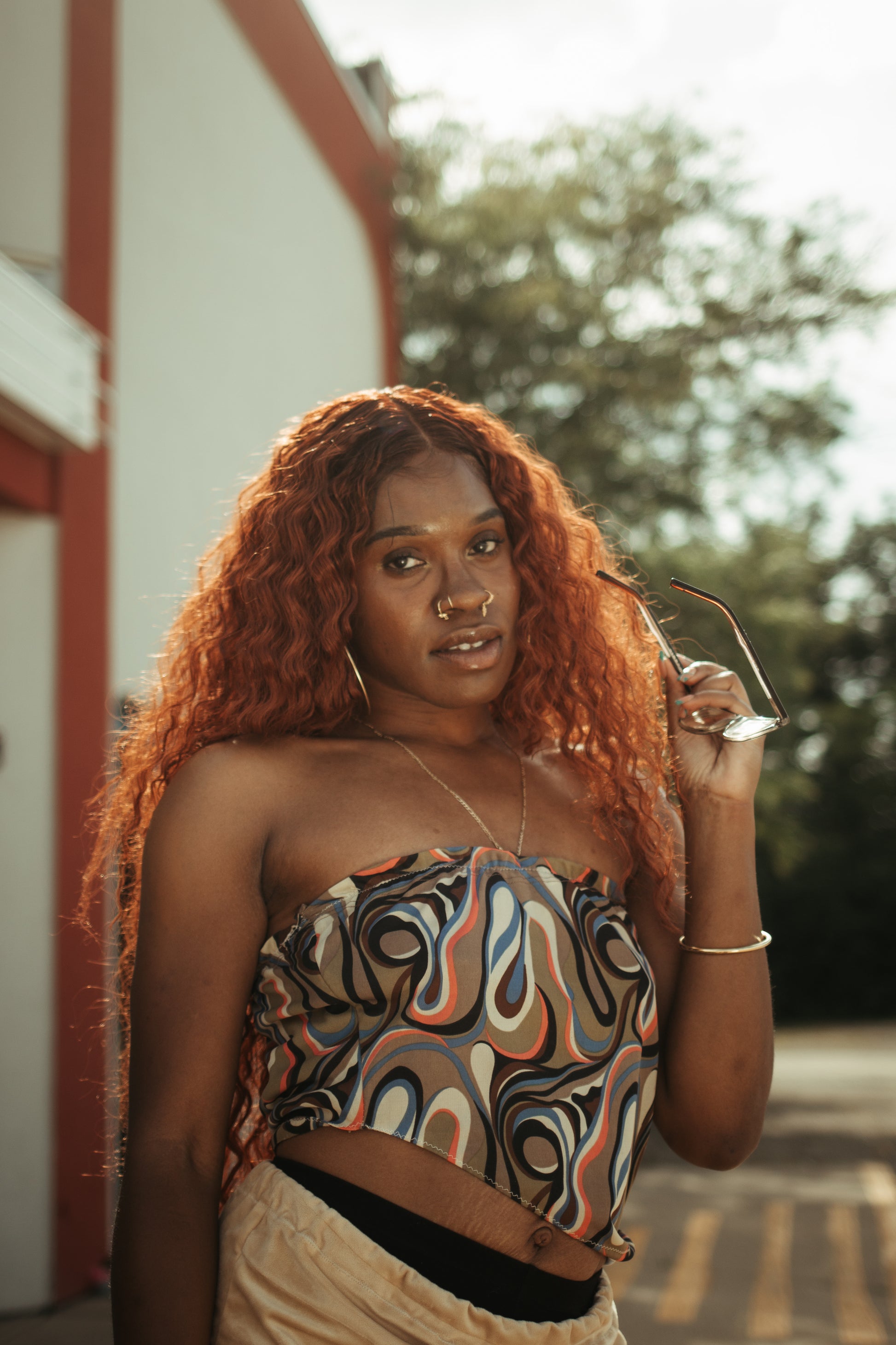 - Vibrant 70's-inspired swirly print