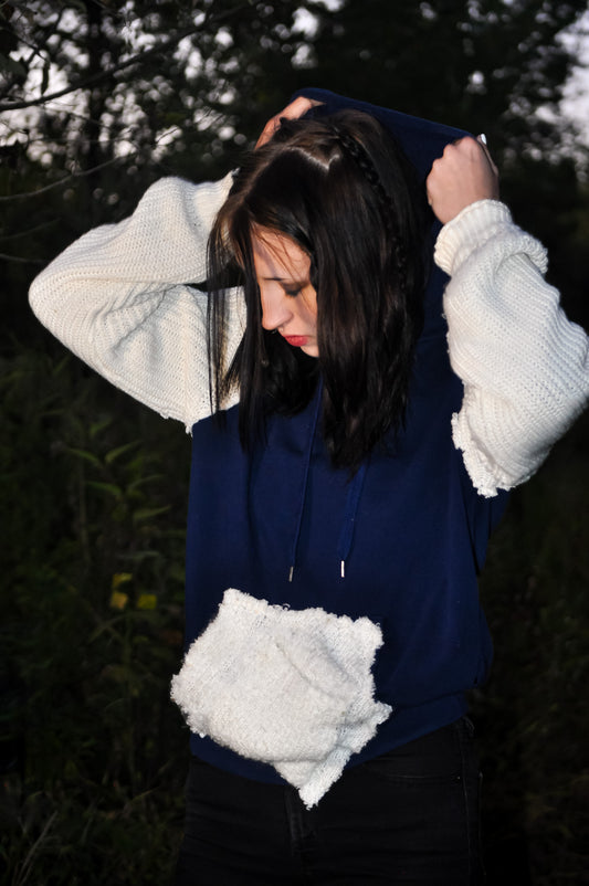 “Knit Baddie” Off-White Double Pocket Hoodie