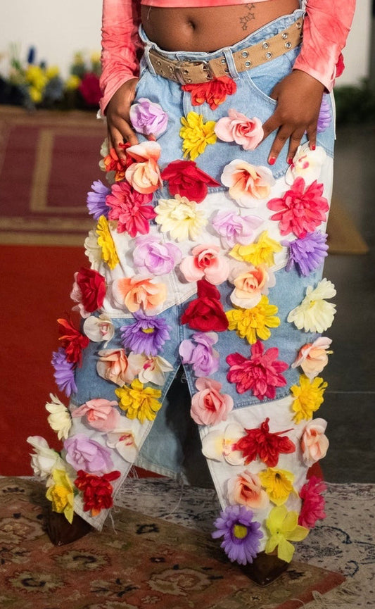 “Floral Fiend” Denim Maxi Skirt