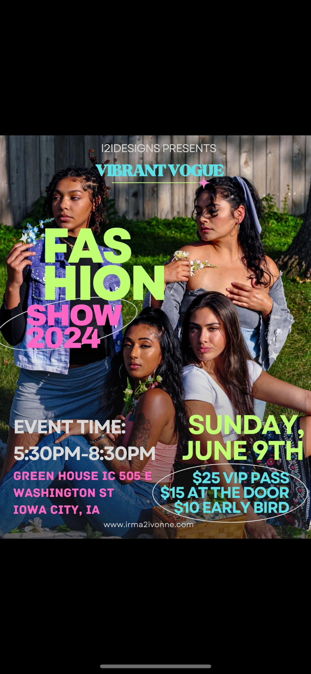 Sunday, June 9th at The Green House (505 E Washington St, Iowa City, IA) and the event will run from 5-9p with showtime at 7p. These custom pieces will showcase a variety of aesthetics and fashionable styles that embody the end of spring and beginning of summer with a refreshing twist you won’t want to miss!